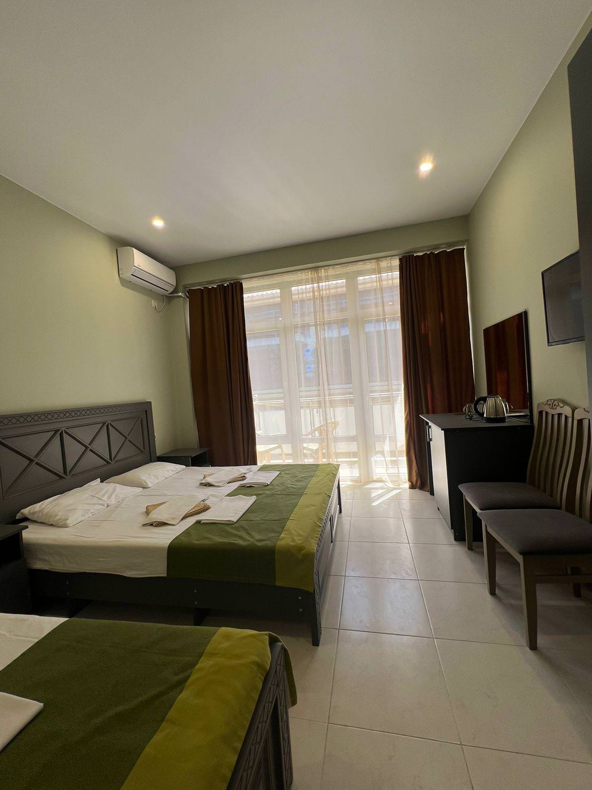 4-местный номер в современном стиле. Окна комнат выходят на море, горы и город. В каждом номере предусмотрена собственная ванная комната. Гости могут воспользоваться кондиционером и холодильником. В пешеходной доступности располагаются закусочные и кафе.